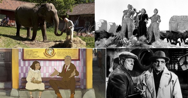 List image (clockwise from top left): The 100 Year-Old Man Who Climbed Out the Window and Disappeared; Westward the Women; Touchez pas au grisbi; The Illusionist