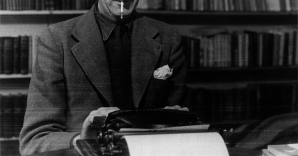 [Photo is of G. Orwell typing]