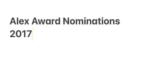 Alex Award Nomimations 2017