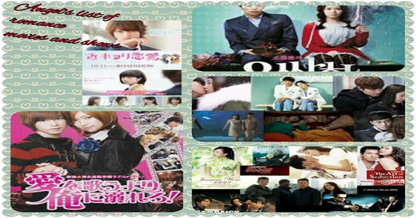 This is my list of romantic movies and shows. Some are Japanese and south Korean. There is one that is Chinese. This is all I have seen and that I can think of off the top of my head.