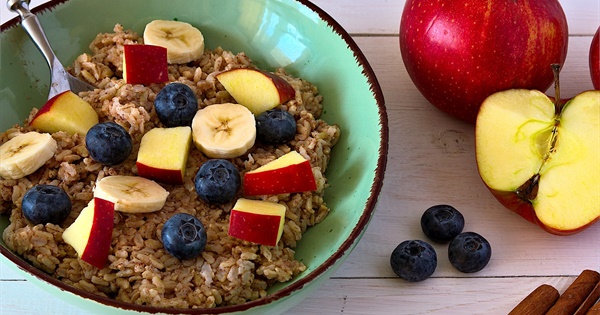 Cinnamon Rice With Apple, Banana and Blueberries