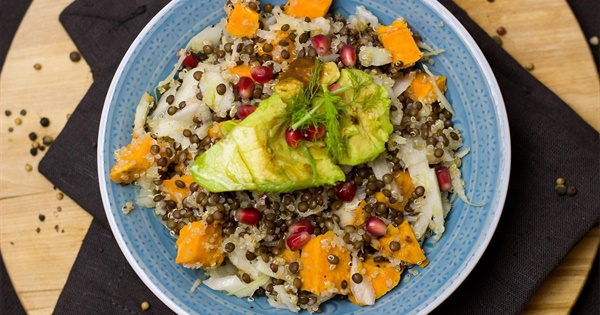 Sweet Potato Lentil and Avocado Salad