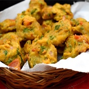 I accidentally included apple fritters, and brussels sprout soup, chickpeas, cookies and cream ice cream, curry, eggplant parmigiana, freeze-dried raspberries, freeze-dried strawberries, French vanilla ice cream, fruit punch, gougères, grilled chicken, grilled steak, kippers, Kit Kats, kola cubes, minestrone, Montreal bagels, no-bake cookies, orange pineapple ice cream, peking shredded pork, pineapple tarts, poached eggs, prunes, pumpkins, rieska, roasted marshmallows, saj, sesame balls, sopapillas, spumoni ice cream, sundried tomatoes, tom yum goong, tootsie rolls, unicorn ice cream, upma, upside-down cake, Victoria sponges, and zucchini twice in this list.