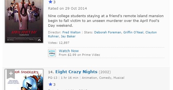 Films Chase Gave a 1-5 on IMDb