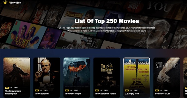 The premier destination for everything related to films is Filmy Box. In addition to giving details about release dates, genres, and the incredible cast and actors, it also looks into juicy details about producers and directors. In addition, you must check out their list of the top 250 films, which is super cool. You can find all the information about your favorite films in one place, which is like the fulfillment of a movie lover's dream. Filmy Box has you covered with a tonne of amazing information, whether you're interested in behind-the-scenes information or want to learn about the greatest films ever!