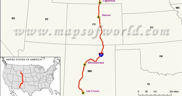 Interstate 25 is a major north-south highway in the western United States, running for 1,062.77 miles through three states, from Las Cruces, New Mexico through Colorado to Buffalo, Wyoming. This is a list of cities and attractions along or near the Interstate, from south to north.