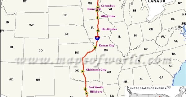 Interstate 35 is a major north-south highway in the central United States, running for 1,567.53 miles through 6 states, from Laredo, Texas at the Mexican border to Duluth, Minnesota. The Interstate was designated in 1956 and completed in 1982. This is a list of cities and attractions along or near the Interstate, from south to north.