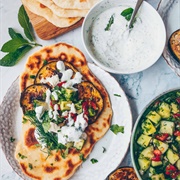 Roasted Eggplant, Red Onion, and Sour Cherry Naan Sandwich