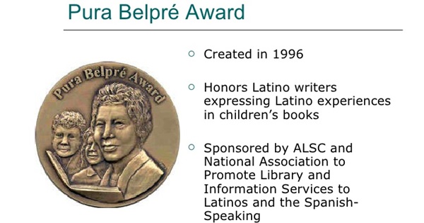 The award is named after Pura Belpré, the first Latina librarian at the New York Public Library. The Pura Belpré Award, established in 1996, is presented annually to a Latino/Latina writer and illustrator whose work best portrays, affirms, and celebrates the Latino cultural experience in an outstanding work of literature for children and youth. It is co-sponsored by the Association for Library Service to Children (ALSC), a division of the American Library Association (ALA), and REFORMA, the National Association to Promote Library and Information Services to Latinos and the Spanish-Speaking, an ALA affiliate.