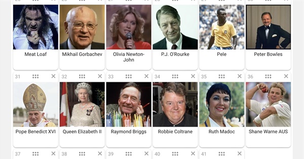 Most of these appear on other lists, though I have added a few well known in the United Kingdom. R.I.P