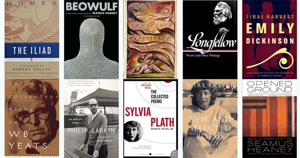 The covers show a recommended version of the work(s). In some cases this is a 2nd or updated edition or a favoured translation. For most of the poetry collections, the source book has a "Be Sure to Read" selection of individual poems.