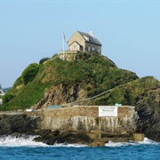 Ilfracombe is a seaside resort and civil parish on the North Devon coast, England, with a small harbour surrounded by cliffs. The parish stretches along the coast from the 'Coastguard Cottages' in Hele Bay toward the east and 4 miles along the Torrs to Lee Bay toward the west. The resort is hilly and the highest point within the parish boundary is at 'Hore Down Gate', 2 miles inland and 860 feet (270 m) above sea level. The landmark of Hillsborough Hill dominates the harbour and is the site of an Iron Age fortified settlement. In the built environment, the architectural-award-winning Landmark Theatre is either loved or hated for its unusual double-conical design. The 13th century parish church, Trinity, and the St Nicholas's Chapel (a lighthouse) on Lantern Hill, have been joined by the Damien Hirst owned statue, Verity, as points of interest.