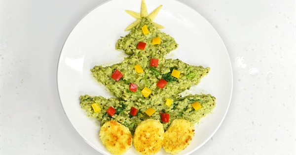 Christmas Tree Rice With Tofu and Bell Pepper